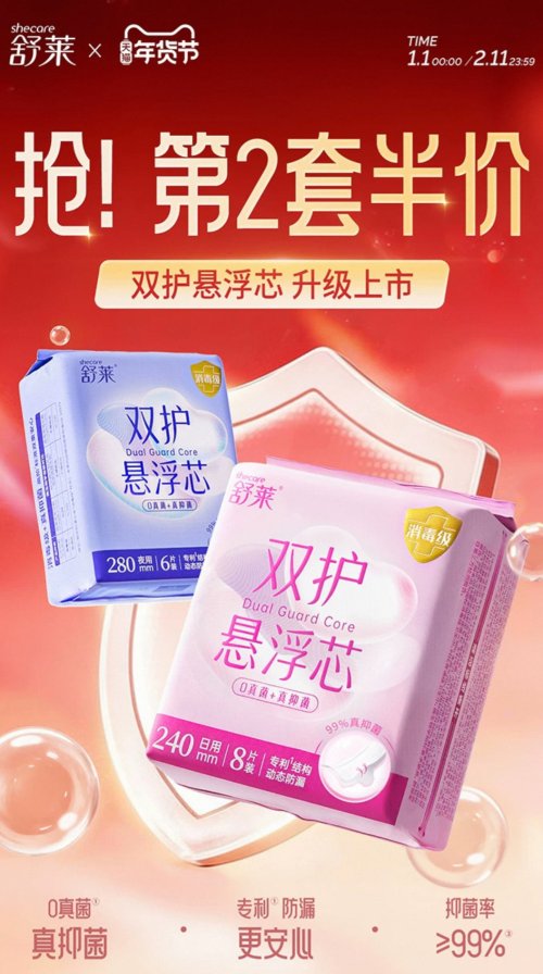 此次与天猫携手开启年货节,是舒莱加码线上平台的重要布局,借助天猫的平台影响力与流量优势,让更多女性接触到高品质的经期养护产品,同时,舒莱以诚意福利回馈消费者多年信赖,让“安心护理”成为新春标配。即刻登录天猫舒莱官方旗舰店,入会解锁更多专属权益,用高品质轻养护产品装点新春,让舒莱陪伴你度过每一个健康舒适的日子,共赴马年美好新程!